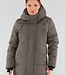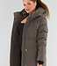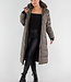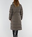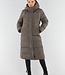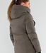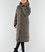 Khaki Lange Pufferjacke mit Kapuze und hohem Kragen