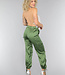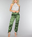 Diese Hose ist ein echter Hingucker! Die Hose hat einen elastischen Bund mit Knopfverschluss, ist hoch tailliert und hat Beine mit einem Schleifendetail. Die Hose hat ein weiches Satinmaterial und coole Cargotaschen an den Seiten der Hose. Die Hose hat keinen Stretchanteil.