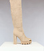 Khakifarbene Plateau-Kniestiefel mit goldenen Details