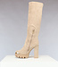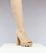 Diese süßen Stiefel sind aus einem Material in Wildlederoptik gefertigt. Sie haben eine runde Schuhspitze, die ihnen einen coolen Look verleiht. Außerdem hat der Stiefel einen hohen Blockabsatz. Sie fallen bis unter das Knie. Diese Stiefel sind sehr schön für die kälteren Tage!