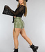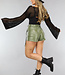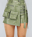 Dieser Skort ist aus einem Stoff in Lederoptik gefertigt und hat einen hohen Stretchanteil. Außerdem verfügt er über mehrere Taschen, Reißverschlüsse und eine Schnalle, die ihm einen coolen und funktionellen Look verleihen. Der Skort hat zwei kleine Pattentaschen auf der Vorderseite und eine tiefe Tasche mit Reißverschluss, der untere Reißverschluss ist ein Detail und ist daher keine echte Tasche. Auf der Rückseite des Skorts befinden sich zwei Gesäßtaschen. Außerdem hat der Skort einen Gummizug in der Taille und fünf Gürtelschlaufen.