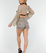 Dieser khakifarbene Bolero ist komplett gehäkelt und hat eine luftige Struktur mit Herzmuster. Der langärmelige Häkelstoff verleiht Ihrem Sommeroutfit einen trendigen Twist. Perfekt zum Tragen über einem Top oder Bikini. Der weiche Stretch-Stoff sorgt für eine bequeme Passform.