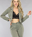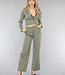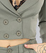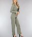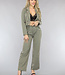 Dieser zweiteilige Anzug besteht aus einem taillierten Blazer und einer Hose mit weitem Bein. Das Set ist aus einem robusten Stoff gefertigt. Der Blazer hat Schulterpolster und einen Umlegekragen. Die Jacke hat zwei Knöpfe und eine Ziertasche. Die Hose hat weite Beine und wird mit einem Reißverschluss und einem einzigen Knopf geschlossen. An der Taille befinden sich fünf Schlaufen, an denen Sie Ihren eigenen Gürtel tragen können. Die Hose hat zwei tiefe Eingrifftaschen.