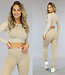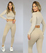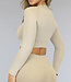 Dieses schöne, dehnbare Sporttop hat Polster und einen festen Gummizug für zusätzlichen Komfort und Halt. Das Top hat lange Ärmel und ein Rippenmuster. Das Top fällt tailliert.