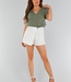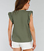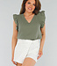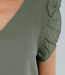 Khakifarbenes ärmelloses Shirt in Leinenoptik mit Rüschen und V-Ausschnitt