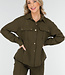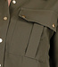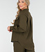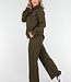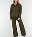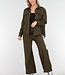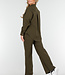 Dieses zweiteilige Set in Khaki besteht aus einer locker sitzenden, abgerundeten Bluse und einer passenden, weit geschnittenen Hose. Die Bluse hat lange Ärmel mit Manschetten, einen klassischen Kragen und zwei markante Brusttaschen mit Patten und Knopfverschluss. Die Knöpfe sind goldfarben und setzen einen dezenten Kontrast. Die Hose hat einen elastischen Bund und eine hohe Taille mit geradem, weitem Bein und auffälligen Bügelfalten an der Vorderseite, die für einen gepflegten Look sorgen. Die schwarze Farbe macht dieses Set vielseitig und eignet sich sowohl für formelle als auch für legere Anlässe.