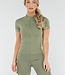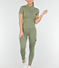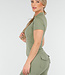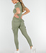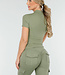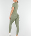 Dieses khakifarbene Sportset kombiniert eine kurzärmelige Jacke mit Reißverschluss mit einer Leggings mit hoher Taille, die über mehrere Cargotaschen und einen Knitter am Rücken verfügt. Das Set ist aus einem weichen Stretch-Stoff gefertigt und bietet eine bequeme Passform. Die abgesteppten Linien und Details sorgen für einen coolen Look und betonen perfekt Ihre Figur!