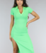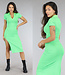 Grünes Rippstrick-Polokleid mit V-Ausschnitt und Schlitz