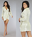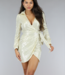 Dieses Kleid ist komplett mit Pailletten besetzt, was es zum ultimativen Outfit für eine Party macht. Außerdem verfügt das Kleid über Schulterpolster, die im Kleid befestigt sind. Das Kleid hat eine süße Überlappung und ein Knopfdetail.