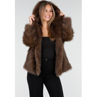 Kurzer taupefarbener Wintermantel mit Kapuze