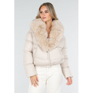 Gesteppter Parka mit beigem Kunstpelz - Bei uns finden Sie d..