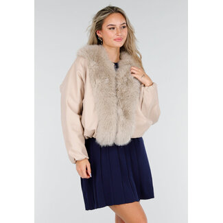 Beigefarbene Soft Intermediate Jacke mit braunen Details