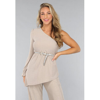 TOPBeige schimmerndes Top mit einzelnen Ärmeln