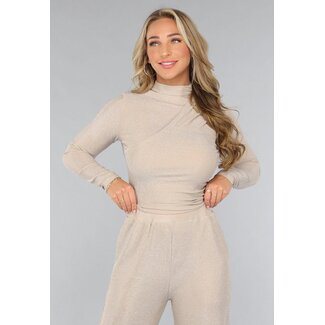 Goldfarbenes hochgeschlossenes Top mit Falten