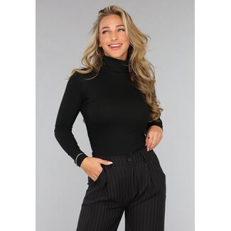 Langärmeliges Rippstrick-Top mit Col in Schwarz