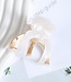 Diese kleine Haarspange hat eine schöne Perlmuttfarbe und ist innen goldfarben.
