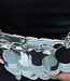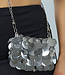Die Tasche hat einen Reißverschluss und ein Fach zum Verstauen Ihrer Sachen. Der Trageriemen der Tasche ist aus einer silbernen Kette gefertigt.
