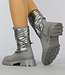 Graue, klobige Stiefel mit gepolstertem Schaft