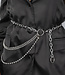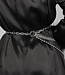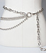 Dieser Gürtel ist silberfarben und hat eine Kettenoptik und ist vollständig einstellbar. Da der gesamte Gürtel eine Kette ist, können Sie ihn so eng machen, wie es für Sie richtig ist. Er verfügt über drei zusätzliche Detailketten.