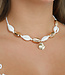 Diese sommerliche Halskette hat ein niedliches Kaurimuscheldesign. Sie besteht aus acht Kaurimuscheln, von denen vier in Weiß und vier in Gold gehalten sind. An der Halskette ist außerdem ein niedlicher Muschelanhänger befestigt. Die Halskette wird mit einem Karabinerverschluss geschlossen. Wir empfehlen, den Schmuck nicht beim Duschen etc. zu tragen, damit der Schmuck seine optimale Ausstrahlung behält.