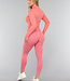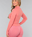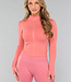 Dieses langärmelige Sporttop ist aus einem glatten, atmungsaktiven Stretchmaterial gefertigt und verfügt über einen Reißverschluss auf der Vorderseite. Die Ärmel des Tops sind lang und haben Daumenlöcher am Ende. Dieses Top enthält keine Cups.