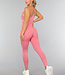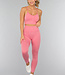 Dieser Sport-BH ist dehnbar und verfügt über herausnehmbare weiche Polster. Der Sport-BH hat verstellbare Spaghettiträger und ist tailliert, wobei sich die Spaghettiträger im Rücken kreuzen.