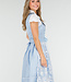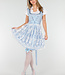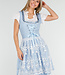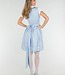Dieses charmante blaue Dirndl-Oktoberfestkleid hat ein feines weißes Punktmuster und ein Mieder mit Schnürung und Satinband. Das Modell wird mit einem Reißverschluss an der Seite und vorne geschlossen, was für zusätzlichen Tragekomfort sorgt. Die weiße Bluse und die Spitzenschürze werden separat mitgeliefert. Hergestellt aus geschmeidigem Material mit raffinierten Spitzenverzierungen. Perfekt für das Oktoberfest, Themenpartys oder Bierfestivals.