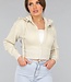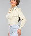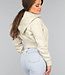 Kurzer, beigefarbener Cardigan mit Reißverschluss