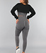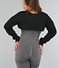 Dieser Pullover ist tailliert geschnitten und hat lange Ärmel, die am Ende einen verbindenden Saum haben. Er hat einen einzigartigen Wickel-Look. Der Pullover ist aus einem weichen, dicken Stretch-Stoff gefertigt und hat einen weiten Rundhalsausschnitt.