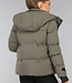 Dieser wasserabweisende Wintermantel ist gesteppt und fällt kurz. Er hat eine Kapuze mit einem elastischen Kordelzug. Die Jacke hat einen Reißverschluss mit einer Klappe mit Druckknöpfen und Klettverschluss darüber. Diese Klappe verhindert, dass der Wind durch den Reißverschluss eindringt. Sie hat zwei schräge Fleece-Seitentaschen mit Druckknopf und eine Brusttasche mit Reißverschluss. Die Innenseite der Jacke ist mit einem elastischen Kordelzug versehen, der das Eindringen von Wind verhindert. Die Ärmel der Jacke haben elastische Bündchen mit Daumenlöchern und eine Lasche mit Klettverschluss. Diese Winterjacke ist perfekt für kalte Wintertage!