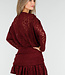 Dieses kurze Kleid ist aus burgunderrotem Spitzenstoff mit einer dehnbaren Struktur gefertigt, die für eine flexible Passform sorgt. Das Modell hat einen Rundhalsausschnitt und lange Ärmel aus transparentem Spitzenstoff. Die Taille und der Hüftbereich sind leicht plissiert und schmiegen sich dank des Stretchstoffs schön an. Der Rock reicht bis über das Knie und ist mit einem asymmetrischen Plissee-Saum versehen.