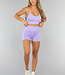 Dieses Sport-Set ist aus einem sehr hochwertigen Stoff gefertigt. Der Stoff ist dehnbar, bietet aber auch Kompression in Bereichen, wo es nötig ist. Der Stoff ist herrlich weich und extrem atmungsaktiv. Das Set hat eine lila Farbe und lässt sich daher gut mit anderen Artikeln kombinieren. Der Sport-BH hat einen runden