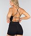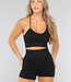 Aus einem dicken Stretch-Stoff gefertigt, bietet dieses Sport-Kit auch Kompression in Bereichen, in denen sie benötigt wird. Der Stoff ist herrlich weich und sehr atmungsaktiv. Das Set hat eine schwarze Farbe und ist daher leicht mit anderen Artikeln zu kombinieren. Der Sport-BH hat einen runden Ausschnitt mit Spaghettiträgern und herausnehmbaren Einlagen. Der Rücken ist offen und hat Riemen quer über den Rücken. Die Shorts des Sets haben eine hohe Taille und einen Bügel auf dem Rücken.