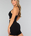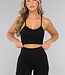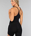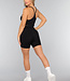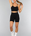 Aus einem dicken Stretch-Stoff gefertigt, bietet dieses Sport-Kit auch Kompression in den Bereichen, in denen sie benötigt wird. Der Stoff ist herrlich weich und sehr atmungsaktiv. Das Set hat eine schwarze Farbe. Der Sport-BH hat einen runden Ausschnitt mit Spaghettiträgern und herausnehmbaren Polstern. Die Shorts des Sets haben eine hohe Taille und ein Bündchen am Rücken.