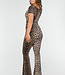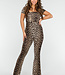 Dieser braune Jumpsuit mit Leopardenmuster besteht aus einem Stretch-Stoff, hat ausgestellte Beine und einen eleganten quadratischen Ausschnitt mit kurzen Ärmeln. Das Design ist sowohl schick als auch bequem und eignet sich perfekt für einen Tagesausflug oder eine lässige Ausgehparty. Der weiche Stoff bietet eine hervorragende Passform, während die Schlaghosenbeine dem Look einen Retro-Look verleihen. Es ist eine vielseitige Wahl, die sowohl mit Absatzschuhen als auch mit Turnschuhen getragen werden kann, was es zu einem Must-Have für Ihre Sommeroutfits macht.