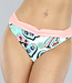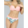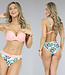 Dieser Bikini besteht aus zwei Farben. Ein Paisleymuster und Lachs. Das Oberteil hat verstellbare Schulterträger und einen Hakenverschluss auf der Rückseite. Außerdem hat es Bügel-Cups und ein Push-up-Modell. Die Cups sind vorne in Falten gelegt. Das Unterteil hat eine normale Passform und ist mit einem hübschen Paisleymuster und einem lachsfarbenen Band auf der Vorderseite versehen.