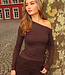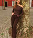Dieses einseitige Oberteil in Braun ist aus einem weichen Stretchstoff gefertigt. Das Oberteil hat lange Ärmel und eine enganliegende Passform.