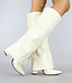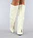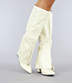 Lange cremefarbene Faltenstiefel mit spitz zulaufender Nase