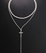 Lange silberne Strass-Halskette mit Kreuz-Detail