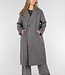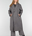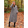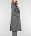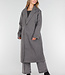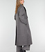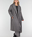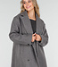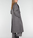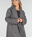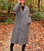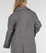 Dieser graue Mantel ist aus einem robusten Stoff mit glatter Oberfläche gefertigt. Der Mantel hat lange Ärmel und eine gerade Passform, die bis zu den Knöcheln reicht. Vorne wird der Mantel mit einer doppelten Knopfleiste geschlossen, hinten befindet sich ein Schlitz für zusätzliche Bewegungsfreiheit. Außerdem verfügt der Mantel über Seitentaschen auf beiden Seiten und Knopfdetails an den Ärmelenden.