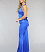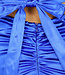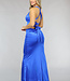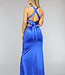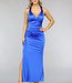 Dieses schöne Kleid ist aus einem Satinstoff gefertigt. Das Kleid hat ein Halfter Modell. Der Rock fällt schön lang und hat einen hohen Schlitz. Am Rücken befindet sich ein verdeckter Reißverschluss, der das An- und Ausziehen des Kleides erleichtert. Was das Kleid einzigartig macht, ist die Schnürung auf der Rückseite des Kleides. Am Gesäß befindet sich ein weiterer kleiner Reißverschluss, der das Anziehen des Kleides erleichtert.