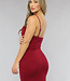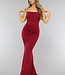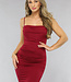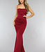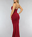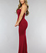 Langes plissiertes weinrotes Kleid mit Spaghetti-Trägern