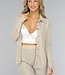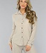 Diese Bluse ist aus einem Stoff mit viel Stretch gefertigt. Sie hat lange Ärmel und einen Kragen. Auf der Vorderseite befindet sich ein Knopfverschluss, der aus sechs goldenen Knöpfen besteht. Außerdem ist diese Bluse mit Glitzersteinen besetzt.