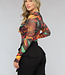 Dieser bedruckte Body ist aus einem bequemen und luftigen Netzmaterial gefertigt. Der Body hat lange Ärmel mit Daumenlöchern, einen Rundhalsausschnitt und am unteren Ende zwei Druckknöpfe. Das Unterteil des Bodys fällt wie ein Tanga-Modell.