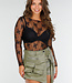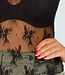 Schwarzes Mesh-Top aus Spitze mit Stretch und Blumendruck