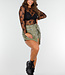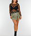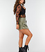 Khakifarbener Cargo-Skort mit Revers in Lederoptik