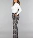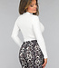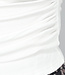 Dieses Oberteil ist aus einem feinen Stretch-Stoff gefertigt. Das Oberteil hat lange Ärmel und einen hohen Kragen. Das Oberteil hat Plissee-Details an der Taille. Das Oberteil ist einfarbig.
