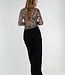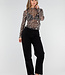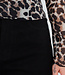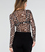 Mesh-Top mit Leopardenmuster in Braun und Schwarz. Das Top hat lange Ärmel, einen Rundhalsausschnitt und eine figurbetonte Passform. Der Stoff ist leicht transparent und enthält Stretch.