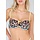 Dieses Bikini-Oberteil hat ein Leopardenmuster und einen tiefen Ausschnitt. Das Oberteil ist aus glattem Material gefertigt und mit gelben und blauen Bändern entlang der Cups und Träger verziert. Die Cups sind mit Polstern und einem Bügel für zusätzlichen Halt versehen. Auf der Vorderseite befindet sich ein Schnürverschluss, der für ein verstellbares Detail sorgt. Die Träger sind schmal und verstellbar. Das Oberteil ist vollständig gefüttert und hat eine figurbetonte Passform.