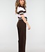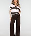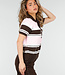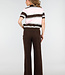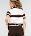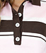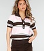 Dieses Polo-Oberteil ist in einer Kombination aus Hellrosa, Braun und Weiß mit horizontalen Streifen gehalten. Das Modell ist aus einem fein gestrickten Stoff mit leichtem Stretch gefertigt und hat eine gerade Passform. Das Oberteil hat kurze Ärmel mit gerippten Bündchen und einen breiten gerippten Saum an der Unterseite. Der Halsausschnitt ist mit einem Kragen und einer kurzen Knopfleiste auf der Vorderseite versehen.